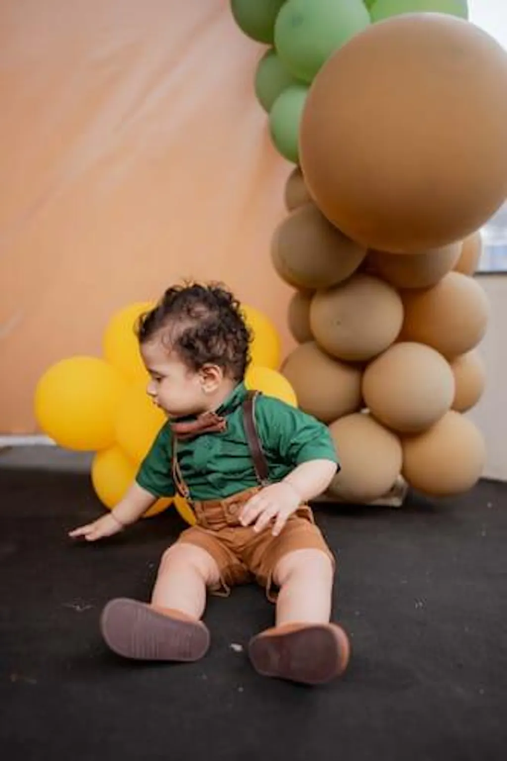 A green shirt paired with brown shorts and brown suspenders with a matching bow tie creates a stylish and trendy outfit for boys. The green shirt is made from a soft, breathable fabric and features a button-up front, short sleeves, and a classic collar. The shirt has a vibrant shade of green, which complements the earthy tone of the brown shorts and suspenders.
